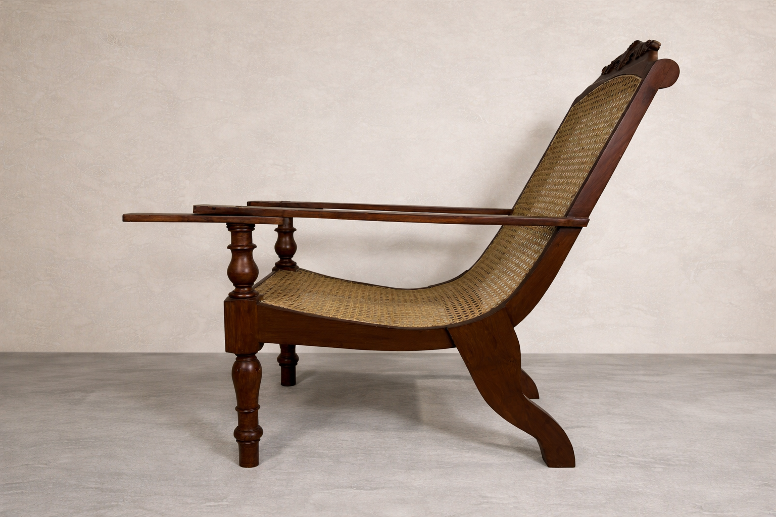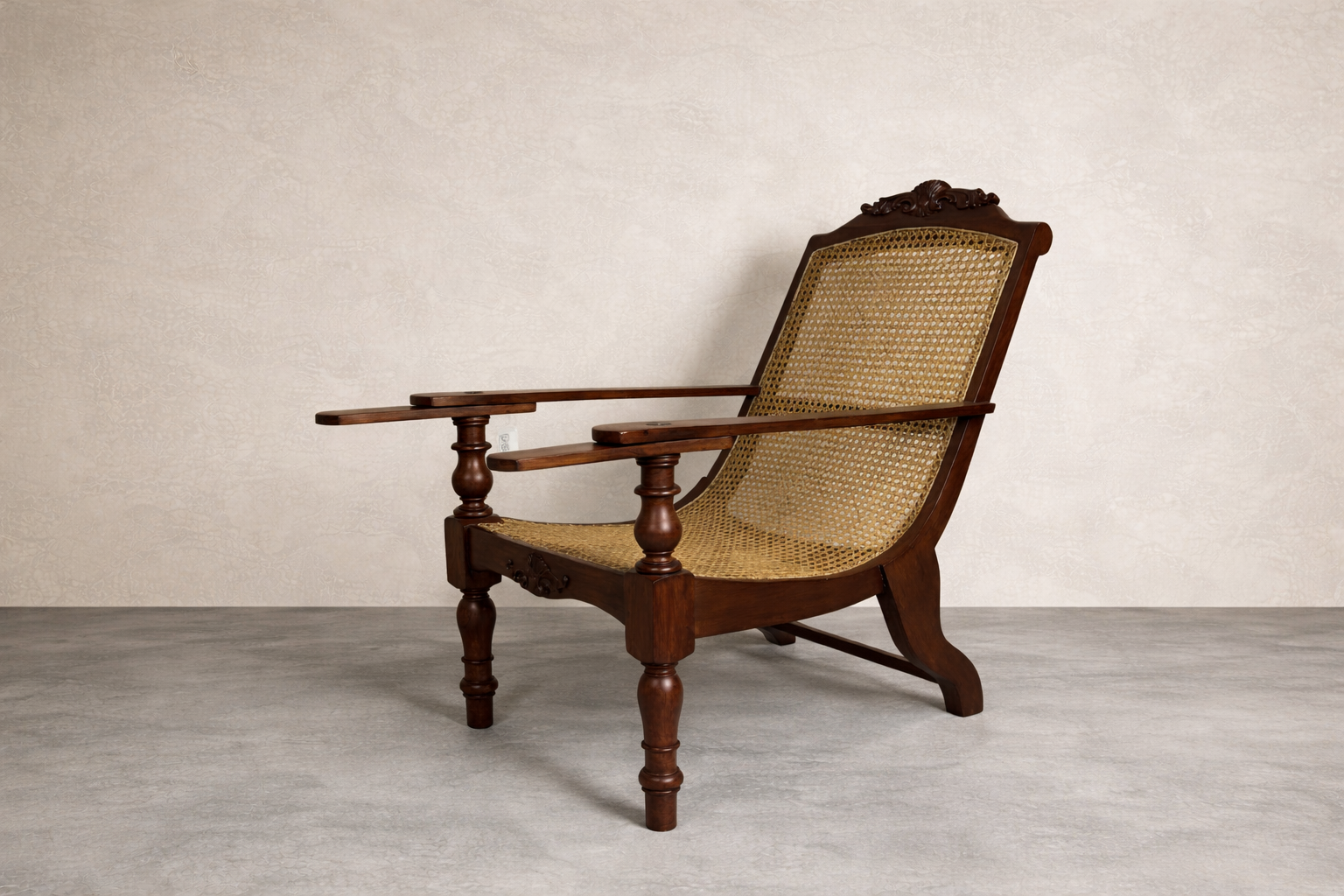 The Devi Easy Chair is a refined expression of relaxed elegance and timeless craftsmanship. Handcrafted from solid teak wood by skilled artisans, it features gracefully turned legs, broad wooden armrests, and a gently reclined silhouette inspired by traditional South Indian verandah seating. The hand-woven natural cane seat and back provide breathable comfort while showcasing artisanal detailing and organic texture, and its rich teak finish highlights the natural grain of the wood. Designed for lingering moments and quiet luxury, this heirloom-quality piece brings warmth, heritage, and understated sophistication to any space, reflecting Aashaari’s commitment to enduring design and craftsmanship.